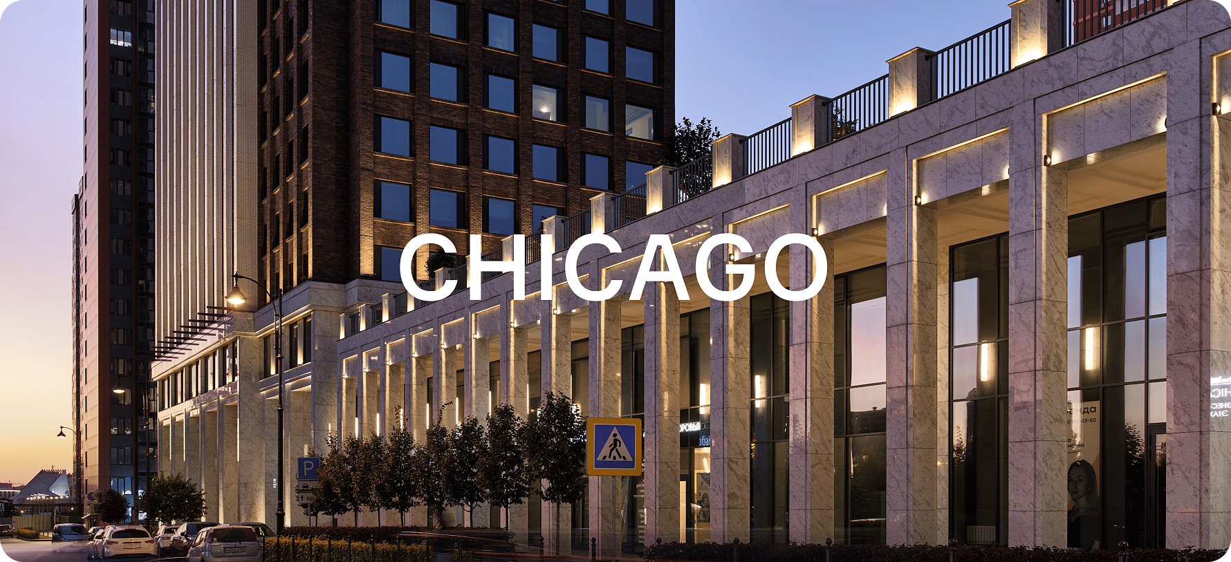 Общественно-деловой сити-квартал с собственным пешеходным мостом на набережную.
